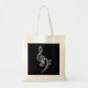Un elegante y sencillo tema de la música en blanco/negro bolsa de té - trébol blanco y bajos clefs contra un fondo negro texturado. Amor musical.