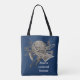 "La música es un lenguaje universal" es el sentimiento en esta bolsa de tote acompañado por un grabado vintage de instrumentos de banda y sábanas de música que están siendo investigadas por pequeños pájaros adorables. Este grabado en blanco y negro, vintage, aparece a ambos lados de esta bolsa junto con el texto sobre un fondo azul oscuro. Todo el texto y el color de fondo se pueden personalizar si lo desea.