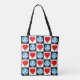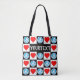 Una bolsa de tote para mujeres super adorable y personalizable para nadadores, entrenadores de equipo de natación y otros fanáticos de natación y submarinismo, con un diseño único de cuadros negros y blancos con corazones rojos brillantes en cuadrados blancos y un icono único de nadador en cuadrados negros, y una caja de texto personalizado donde puedes escribir tu propio nombre de equipo de natación o cualquier otro texto (nombre de escuela, mascota, lema, etc.)! El icono del nadador presenta un diseño único con el icono clásico de nado en la parte superior y el agua de la piscina azul como fondo. Son perfectas para los bañistas, las madres nadas, los entrenadores y otros fanáticos que puedan llevar durante la temporada de natación, sobre todo para practicar y nadar.