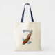 Un simple zen Feng Shui pintura acuarela de arte en tote de la artista Sacha Grossel de un naranja japonés de carpa Koi nadando río abajo en un fondo personalizable. Este sencillo diseño koi es artístico con una temática oriental, asiática o japonesa