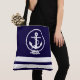 Bolso De Tela Nautical Anchor and White Stripe Pattern Fun