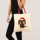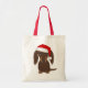Esta bolsa de tote festiva incluye un encantador dibujo personalizado de un dachshund de chocolate de pelo largo vestido con un sombrero de Santa rojo brillante. ¡Hace un regalo divertido para los Navidades para las mamás y papás doxie de los perros!