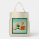 ¿No puedes escuchar su adorable risita nerviosa? Colecciono elfos de pixie vintage. Estos dos rogaban que se posaran juntos, así que ¿qué mejor que en un banco de caña de caramelo con un marco verde purpurina? ¡Qué tote tan bonito para las vacaciones!