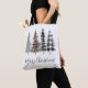 Un diseño divertido y moderno con estampados de árboles navideños y el dicho "Feliz Navidad" que puedes personalizar fácilmente con sólo unos cuantos clics.