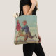 ¡Hermosas bolsas de tote de todo el mundo! ¡Disponible en dos estilos y dos tamaños! Imagen vintage de niños de ilustracion con un chica y un niño corriendo a la escuela a través de la hierba de un prado. Un hermoso día soleado, sin tiempo para caminar, este hermano y hermana no quieren llegar tarde!