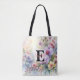 Bolso De Tela Nombre de monograma en acuarela Flores en pasteles