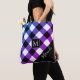 Bolsa de tetas personalizada con un diseño de chapa de bufalo fresco en colores violeta, rosa, azul y negro con un monograma y nombre en la elección de estilos y colores de tipo de letra de texto. Agregue un nombre o elimine el texto de ejemplo para dejar el área en blanco en la esquina negra sólida. El reverso es un color negro sólido que se puede cambiar como se desee. El estilo, el tamaño y el color del tipo de letra del texto también se pueden cambiar para un aspecto diferente. ASISTENCIA: Para obtener ayuda con la modificación o personalización del diseño, el cambio de color, el redimensionamiento, la transferencia del diseño a otro producto o si desea coordinar elementos, póngase en contacto con el diseñador ANTES DE PEDIDOS a través de la pestaña del MENSAJE de charla de Zazzle o envíe un correo electrónico a makeitaboutyoustore@gmail.com.
