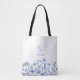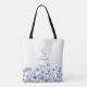 Elegante bolso de teta floral azul con monograma y nombre. Es fácil cambiar el texto. Delicado diseño de flores silvestres acuáticas de bonito.
