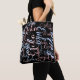 Agregue su propio nombre a la plantilla para crear un diseño de patrón de tipografía sin problemas. Un collage de nombres de diferentes estilos de letra manuscritos rosa y azul en un tote negro fresco