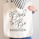 El guión moderno y casual de caligrafía negra de moda "Novia a Ser" boda de novias de las mujeres en la bolsa de tote presenta texto personalizado que se puede personalizar con el nombre de la novia. ¡Un accesorio perfecto para la fiesta de la soltera y el fin de semana boda!