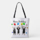 Monjas Bolsa de tote blanca de cumpleaños con 4 monjas con hábitos negros tradicionales sosteniendo globos.