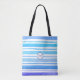 Este moderno bolso de moda personalizada de bolsitas de tote con estripio azul marino de moda será un gran accesorio para cualquier viaje de compras. Con una hermosa mezcla de azul acuático con un monograma circular azul y blanco. Las iniciales del monograma se pueden personalizar según el color de su elección, lo que lo convierte en un regalo perfecto para usted o como un regalo especial para un amigo o miembro de la familia.