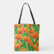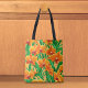 Tote bag with orange orchids, a floral design bag to add the beauty of nature’s bloom to your belongings and style.