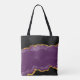 Bolsa abstracta de color negro, morado oscuro y dorado. El texto es personalizable, por lo que puede agregar su propio nombre o una cita.