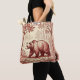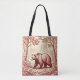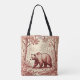 Una imagen vintage de tela de jouy de un oso deambulando por un bosque, en vívidos rojos marrones sobre un fondo bronceado, hace que esta bolsa de tocador sea perfecta para todo aquel que ame los animales, la vida salvaje, la naturaleza y el exterior.