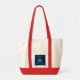 Tote bag shown in natural and red with a silver-tone pageant queens Mrs. America style type state/local crown. Customize this bag and change the text to your name or title. Sample title shown is Mrs. New York.
