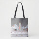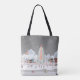 Bolso De Tela Paisaje invernal: celebración del pueblo nocturno.
