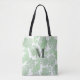 Este diseño presenta un moderno monograma de tote monogramado verde, con un estilo playero elegante, moderno y bonito, un simple minimalista, océano, hojas de palma de bonito, una creación propia, con botánica tropical, una elegante y sofisticada moda elegante