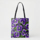 Esta bolsa de tetas presenta hermosas, gráficas, vibrantes, pansias violetas que destacan entre las hojas verdes. Lleve sus productos básicos con estilo y haga una declaración con este tote con la combinación perfecta de moda y función.