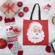 Añade un nombre u otro texto a esta bolsa de tocador con un ilustracion de Santa Claus de estilo vintage con un sombrero rosa de Santa Claus. El ilustracion se sitúa sobre un fondo rojo festivo.