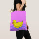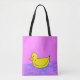 El diseño de este Tote rosa tiene un bonito pato amarillo.