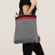 Patrón de ajedrez blanco y negro con la banda roja Tote Bag.