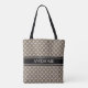 Moda beige y marrón elegante patrón de diamante con correa negra Tote Bag. El texto se puede personalizar.