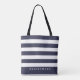 Patrón de rayas azul marino y blanco de moda, bolso tote. Personaliza con nombre y título del grupo nupcial.