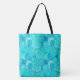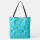 Tote impreso en forma de giro fractal en tonos aguamarina, turquesa y azul oceánico, acentuado con blanco