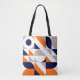 Naranja de patrón geométrico inspirado en Bauhaus, bolsa de tota azul marino y marrón