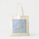 Una bolsa de bonito con un patrón abstracto, en forma de laberinto, azul y blanco, diseñada por Judy Adamson.