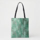 Esta bolsa de tote tiene un patrón de pino verde. Hay tres tipos diferentes de árboles en cuatro tonos verdes. Puedes hacer que el patrón en esta bolsa sea más grande o más pequeño. Esta bolsa de pinos de patrón de teta es un regalo encantador para cualquiera que ame el bosque en verano.