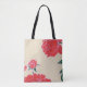 Diseño de peonías rojas por Rockett Graphics. El color de fondo del tote es el personalizable.
