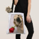 Bolso De Tela Perro del golden retriever con el rosa rojo