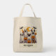 Esta divertida bolsa de tote de las vacaciones de Halloween incluye cuatro perros lindos vestidos con disfraces de fantasmas y llevando jack-o-lanterns. Personalice con su elección de texto especial en la parte delantera y trasera.