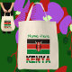 Bolsa de té que muestra la bandera keniana con la palabra KENYA debajo en los colores de la bandera. Arriba, añade tu nombre, en letras verdes, para un toque personalizado o un regalo. Espectáculos de diseño a ambos lados de la bolsa. Muy divertido para el tote a una reunión familiar.