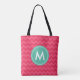 Esta bolsa de tote monogramada con todo-sobre-impreso presenta un patrón preppy de chevron en tonos rosas. Hará la bolsa de tocador perfecta para hacer algunas compras o un viaje a la biblioteca.