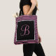 Bolso De Tela Personalizado grande inicial rosado y rayas negras