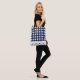 Esta elegante y personalizada bolsa de té presenta un patrón clásico a cuadros color azul marino y blanco con un monograma personalizado "M" y el nombre "Morgan" en un elegante tipo de letra cursiva. La parte inferior de la bolsa muestra un patrón de diamante gris claro adornado con pequeños corazones azul marino. Perfecto para el uso diario, para ir de compras o como un regalo atento. Las asideros negros duraderos proporcionan comodidad y estilo.