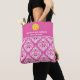 Super lindo bolso de dos caras que sujetará tu palillo de bolas de picnic y equipo. El diseño presenta una bola de picnic amarilla, dos líneas de texto personalizado encima de un patrón de ikat rosa brillante y blanco. Obtén otros para tu club, equipo o viaje de pickleball. ... ... Hace un buen regalo para el jugador de pickleball en tu vida. ... ...