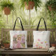 Gift this sentimental Whimsical Meadow tote bag to a grandmother for Mother's Day. It features a lush pink wildflower botanical meadow with a stunning gold brush stroke photo frame on the back. This functional keepsake is perfect for a new grandmother or as a birthday surprise from the grandkids.