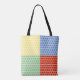 Modernos cuadrados multicolores y círculos blancos Tote Bag.