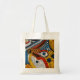 Expressive curves, dotted textures, and vibrant color blocks in red, yellow, blue, black, and white create a dynamic comic‑inspired aesthetic that turns a simple tote into a wearable art piece.