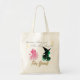 Tote Bag que tiene colores rosa y verde con diseños inspirados en el Glinda de Wicks y Elphaba con una cita que dice "Porque te sabía que me han cambiado para el bien"