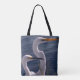 Esta Bolsa de Tote presenta una fotografía original de ZoeSPEAK de dos pájaros blancos de cuello largo posando junto a las aguas azules profundas del océano. El pájaro con el largo y puntiagudo pico negro es una garganta nevada. El pájaro con el largo y puntiagudo pico naranja amarillo es una gran garganta.