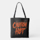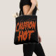 Sube el calor con este bolso atrevido "Precaución: calor". Esta bolsa está llena de letras en llamas y es perfecta para quienes llevan el calor, ya sea su estilo, personalidad o simplemente su café.
