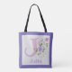 Bolso De Tela Primer nombre inicial más Julia con flores
