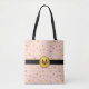 Polka dorado de moda sobre fondo rosa bolsa de Tote. La letra M se puede personalizar.