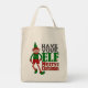 Empieza a tus Navidades a comprar con este peculiar tote reutilizable de Navidades elf que cuenta con un elfo chica por un lado y un elfo de niño por el otro lado.