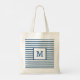 Bolsa de mano de rayas azules oscuras y blancas simple y moderna para chicas, con tu nombre o iniciales personalizadas, para llevar a tu próxima fiesta de cumpleaños especial, compra de comestibles, celebración de oficina, barbacoa al aire libre, baby shower o boda. El patrón y el monograma están disponibles en ambos lados. ¡Personalízalo con tu fuente y color favoritos para hacerlo tu bolsa de mano única!